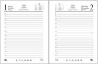 Encuadernada, p?gina por d?a, feriado de 17 pa?ses, cosida al hilo, en espa?ol, portugu?s e ingl?s. Impresa a 1 color, cuerpo de 340 p?ginas m?s ?ndice telef?nico de 24, cinta se?alador al tono.
