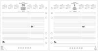 Repuesto para mecanismo de 6 anillos, semana a la vista. Feriados de 17 pa?ses. En espa?ol, ingl?s y portugu?s. Impresa sobre papel blanco de 120 grs. Regla se?alador de 20 cm. La car?tula y los separadores est?n impresos en cartulina, las aletas troqueladas y protegidas con mylar. Cuenta con 5 secciones id?nticas al repuesto escritorio diario.